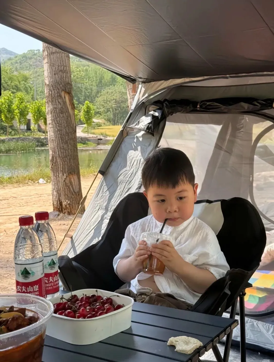 以为孩子吃羊肉香迷糊了,拍下他吃得陶醉的样子。