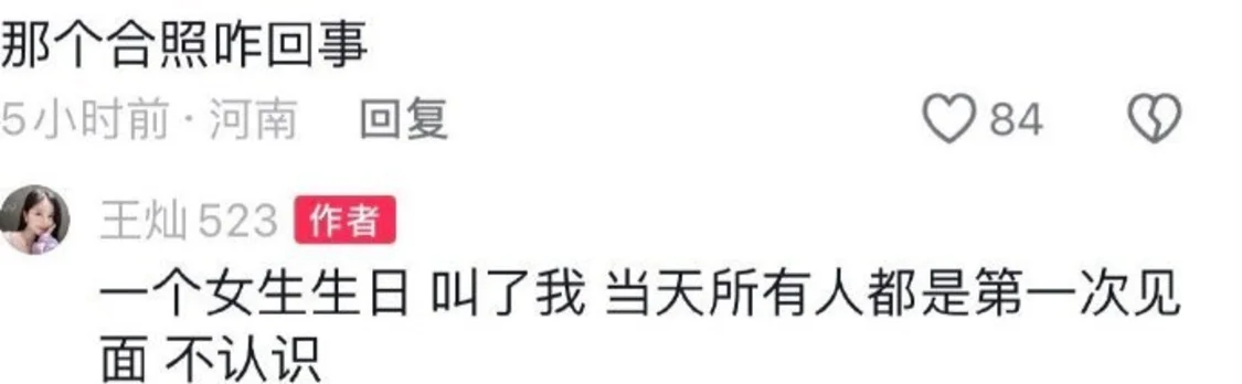 对此,王灿发文回忆与叶珂相识过程:“我们认识是在照片上的那一个聚会,一个女生生日,所有人都是第一次见面,自己社恐,当时在一个角落不怎么说话,也没人过来理自己,叶珂看见了,主动过来照顾自己,给自己夹菜,缓解了自己的尴尬和社恐,就认识了,这就是前因后果,所以什么培训班,不要来挨自己边,没这玩意儿,姐不是,姐也经得起扒。”