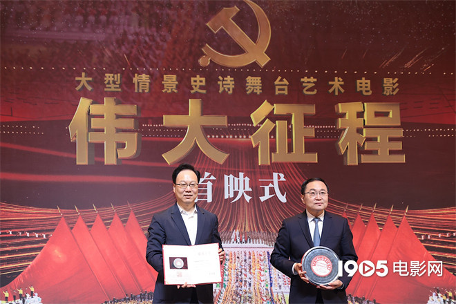 首映式上,中央新闻纪录电影制片厂(集团)向中国共产党历史展览馆赠送了电影《伟大征程》数字拷贝,影片将在党史馆长期放映。