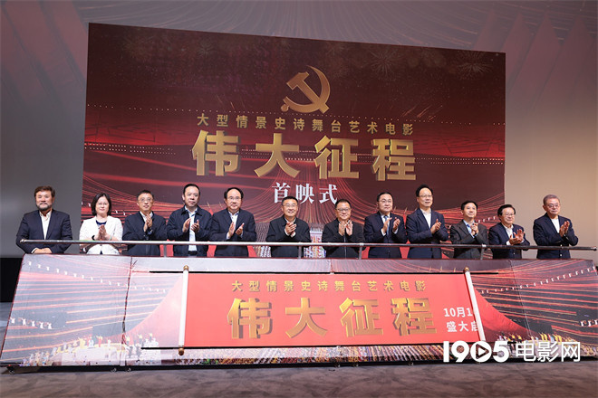 9月29日下午,大型情景史诗舞台艺术电影《伟大征程》首映式在北京举行。文化和旅游部副部长卢映川,中央广播电视总台副台长胡劲军,中宣部电影局主持日常工作的副局长毛羽,中国共产党历史展览馆馆长吴向东,华夏电影发行有限责任公司董事长白轶民,中央新闻纪录电影制片厂(集团)董事长姚永晖,中宣部文艺局副局长彭云,文化和旅游部艺术司副司长黄小驹、何亚文,北京电影学院党委书记钱军,大型情景史诗《伟大征程》文艺演出总导演陈维亚、电影《伟大征程》总导演侯克明等领导嘉宾出席首映式,并共同启动电影《伟大征程》发行放映。影片宣布定档10月16日全国上映。
