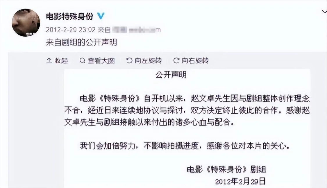 后来,剧组发声明表示和赵文卓解约了,还列出了他的一些“耍大牌”的行为,面对剧组的批评,赵文卓立刻回击了,他否认了“耍大牌”的传闻,并称自己是被剧组单方面解约。