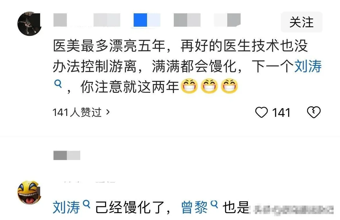 网友说医美做多漂亮5年,再好的技术也办法控制游离,慢慢都会漫化,刘涛和曾黎已经漫化了。