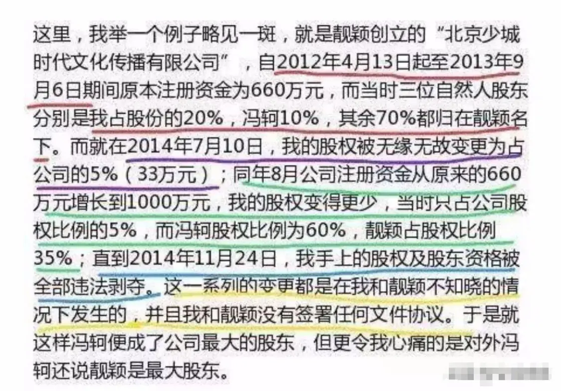 作为公司最重要的人物,张靓颖起初占股70%,她母亲20%,冯珂则是10%。