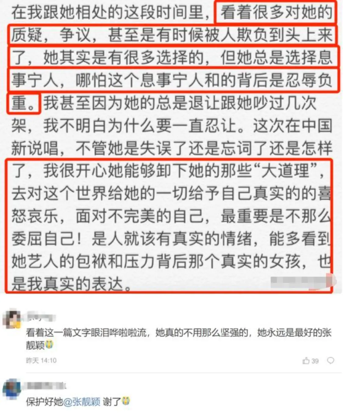尤其是在张靓颖受到攻击后,也是他第一时间站出来为她解释。