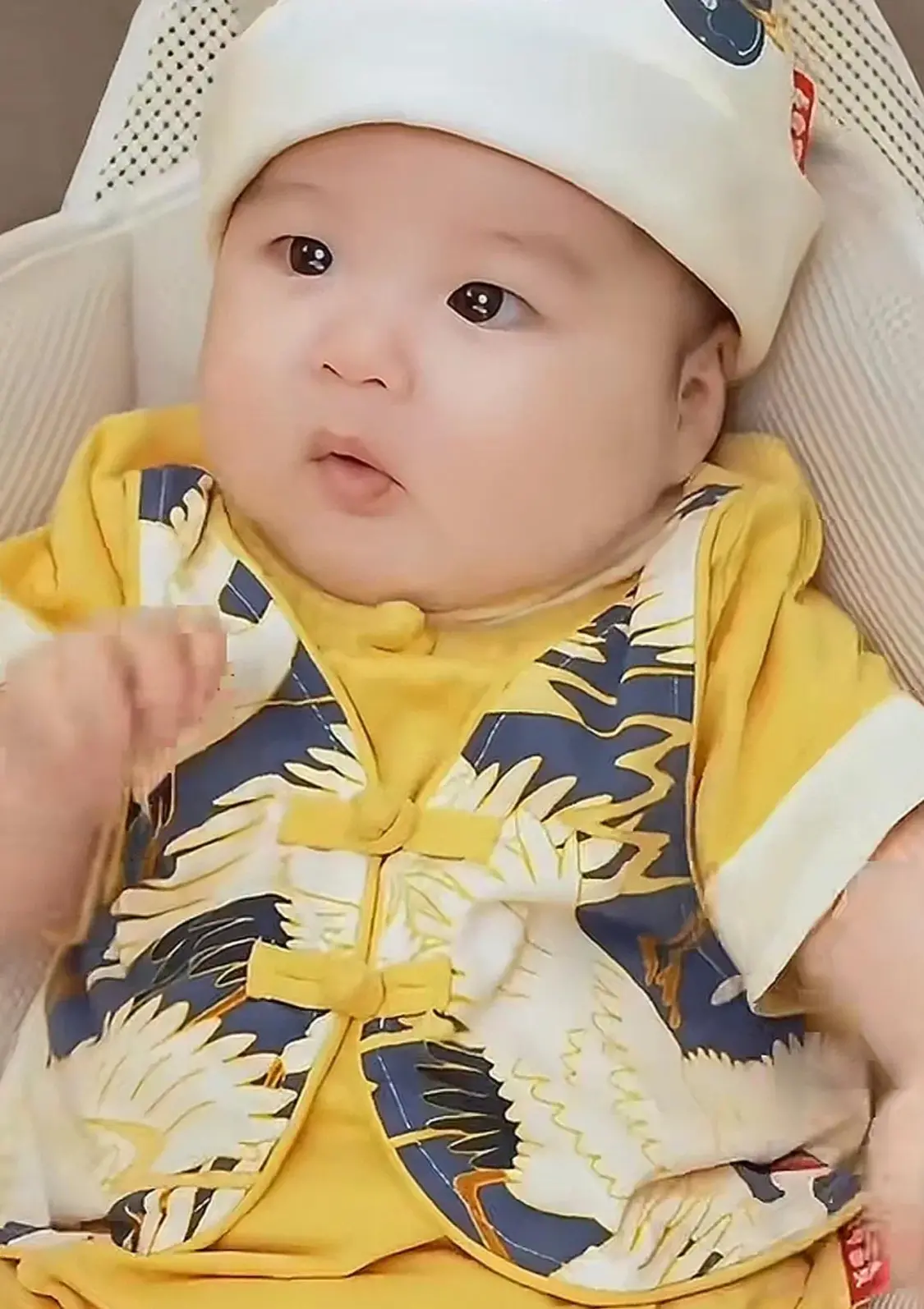 肉乎乎的小圆脸,让很多粉丝都说小陈皮像年画娃娃,