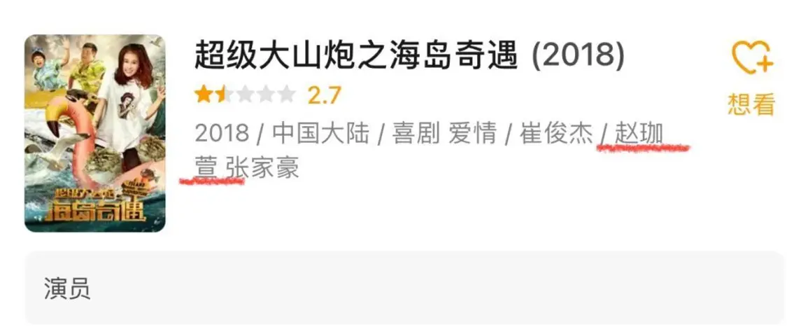 在电影《超级大山炮之海岛奇遇》中饰演商会会长的女儿,