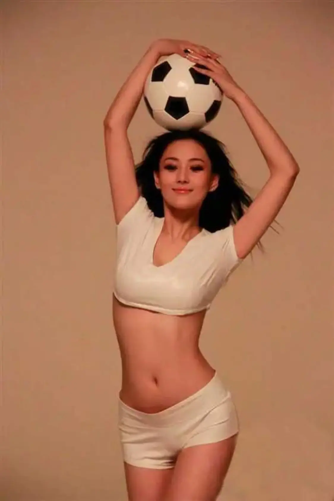 还有这张,张馨予穿着喀麦隆国旗颜色的比基尼泳装,跪在草坪上,大秀自己傲人的事业线和修长的大美腿,魔鬼身材尽显无疑,绝对性感火辣!