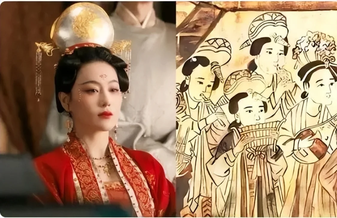 张馨予在剧中造型很是惊艳,其原型取自白沙宋墓壁画,高度还原且与红色适配度极佳,但她戴着一斤重头冠拍戏,也是很敬业!