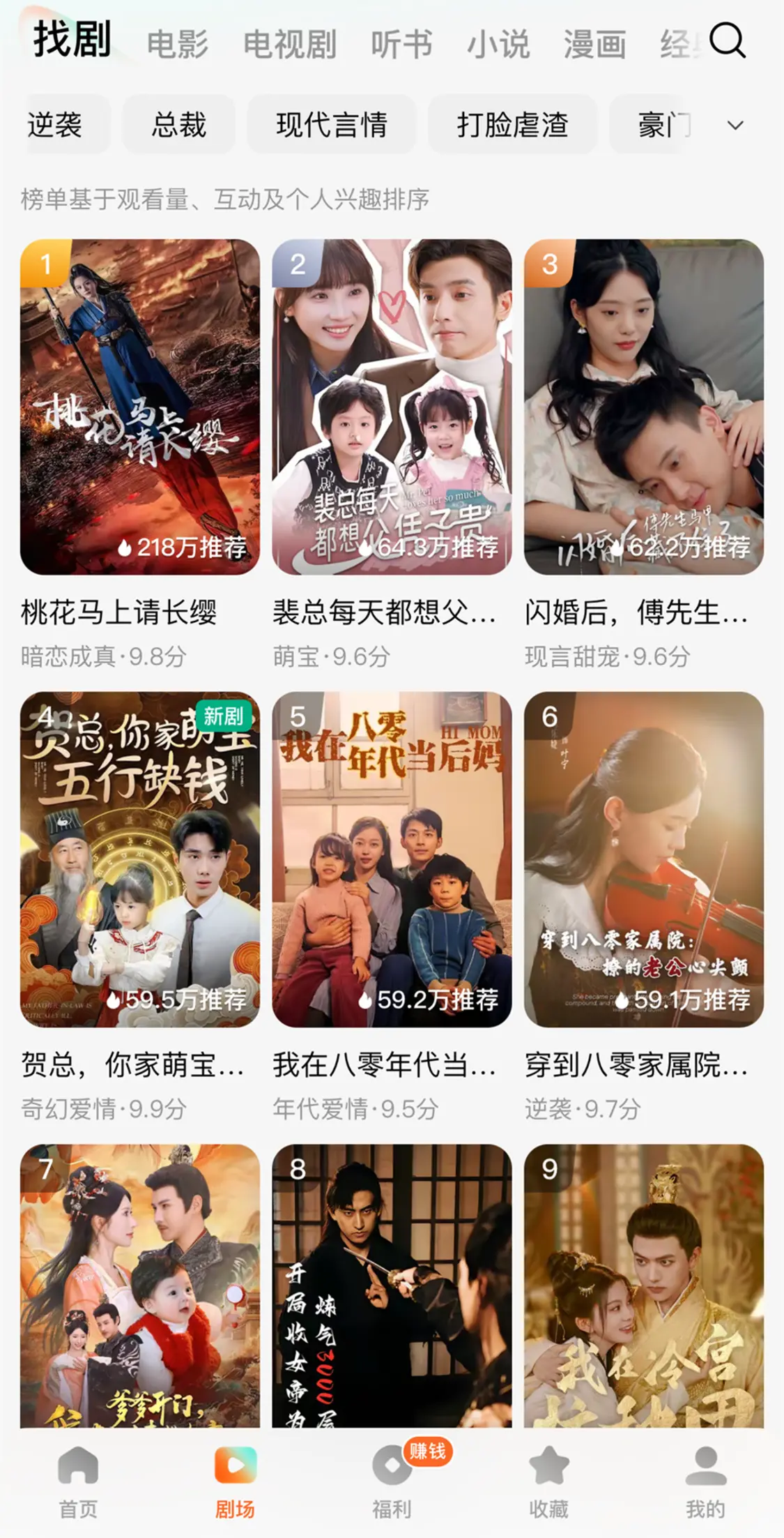 你就往这主页上看吧,总裁、重生、修仙、甜宠..