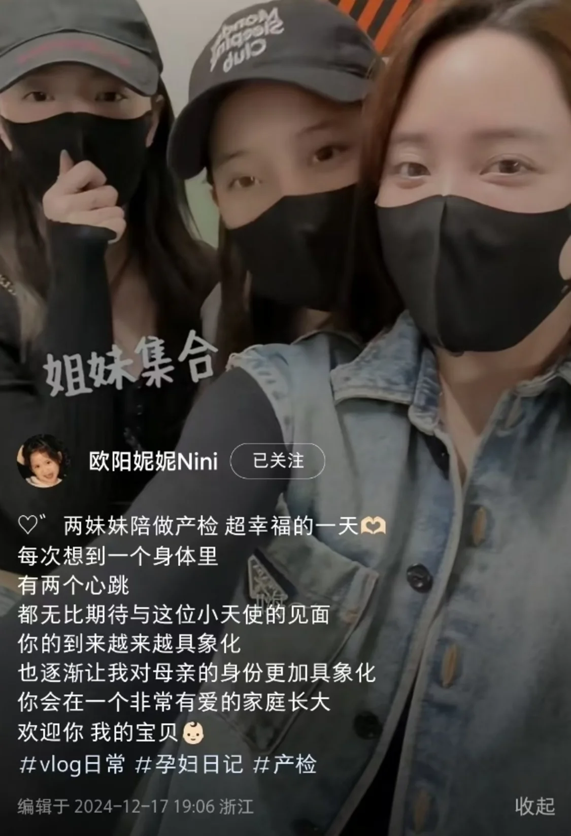 这次有两个妹妹陪同一起做产检,无论是欧阳妮妮还是欧阳娜娜以及欧阳娣娣,都显得十分兴奋,三姐妹同框嬉笑打闹,幸福又温馨。而据欧阳妮妮透露,这次两个妹妹第一次陪着自己产检,格外有意义啊。