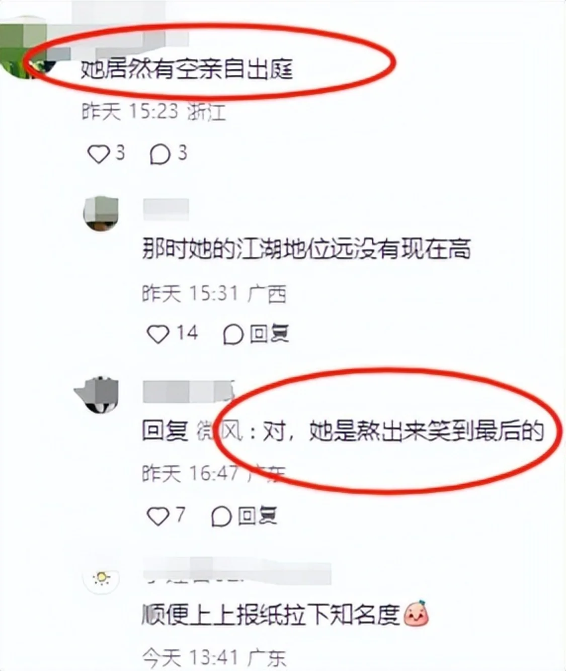 也有网友表示:“她居然有空亲自出庭”“顺便上上报纸拉拉知名度”“那时她的江湖地位远没有现在高,她是熬出来笑到最后的。”
