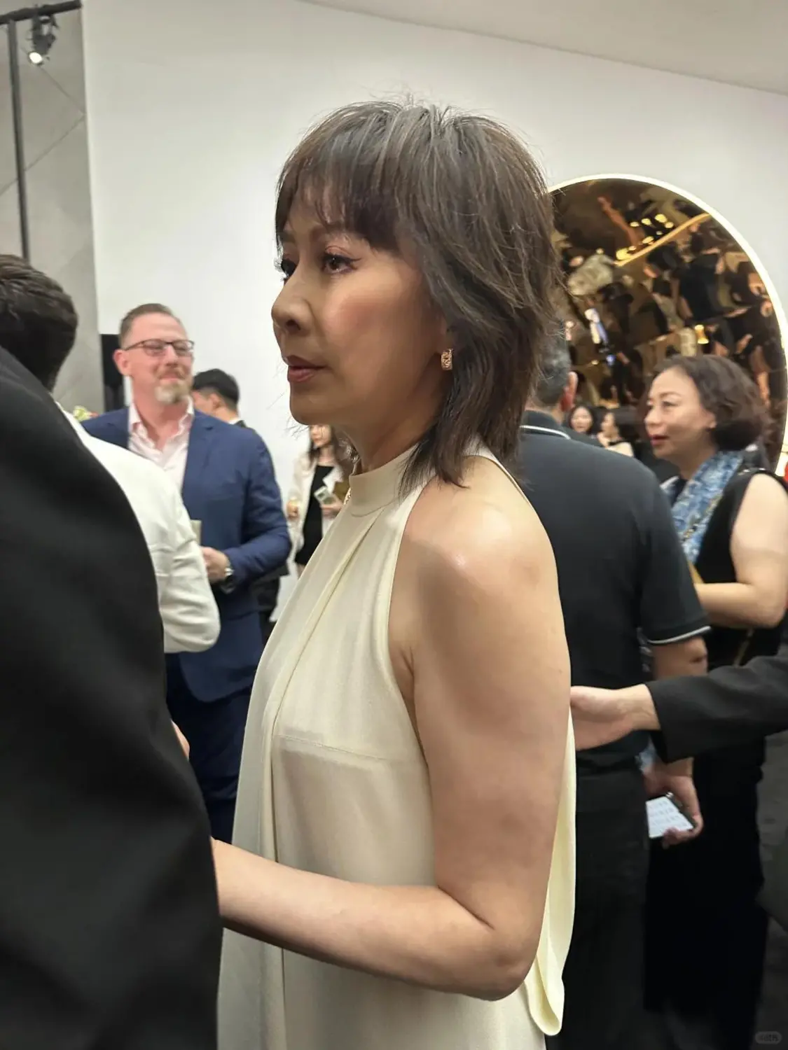 即便年过半百,刘嘉玲作为时装宠儿,仍不时出席各大时装社交场合,日前她现身国际品牌Dior展览,著名钢琴家郎朗及妻子吉娜、内地艺人江疏影、苏芒等人均应邀出席,刘嘉玲作为场内份量最重艺人之一,以白色背心现身,配以利落短发,简约单而不失隆重。