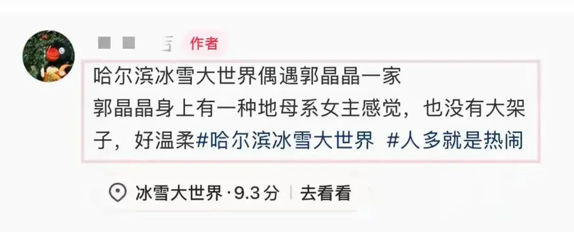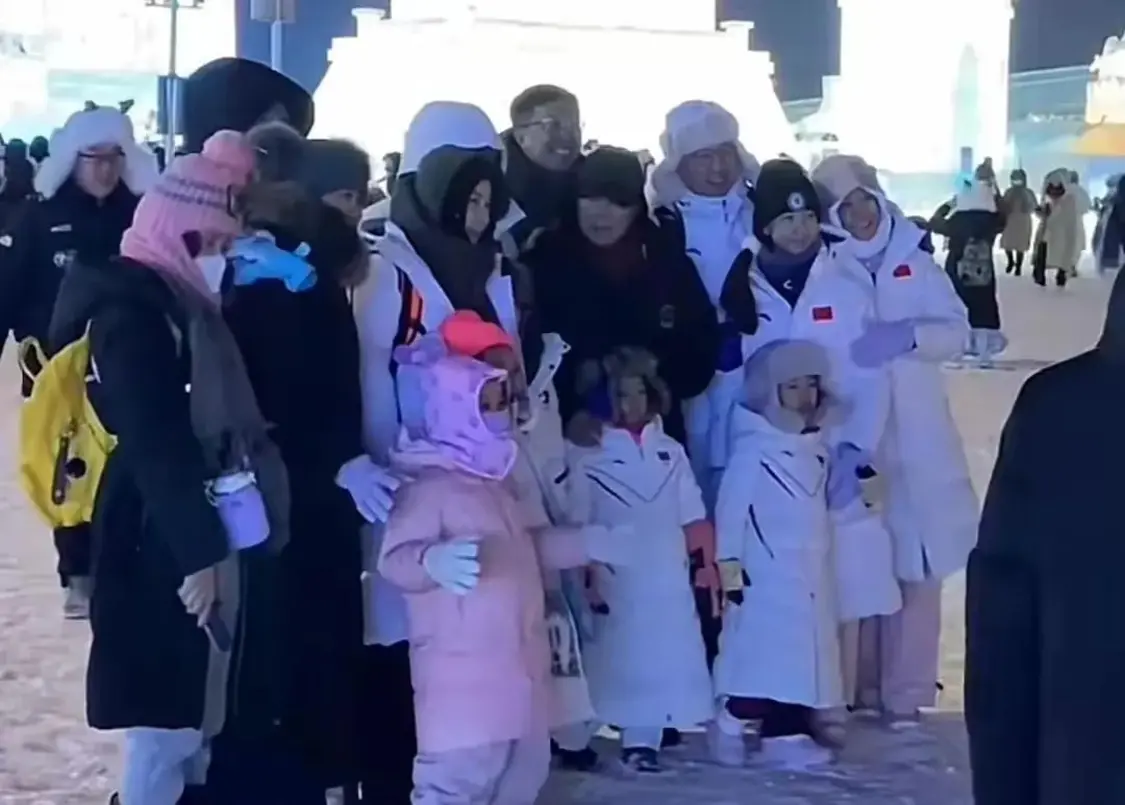 郭晶晶国民度很高,很快就被人认出来了。游客们都上前跟这一家人合影,郭晶晶穿着一件白色羽绒服,里面还有一件黑色羽绒服,虽然郭晶晶是北方人,入选国家队后,又长期生活在北京,但哈尔滨零下十几度的天气,郭晶晶还是包裹得很严实。