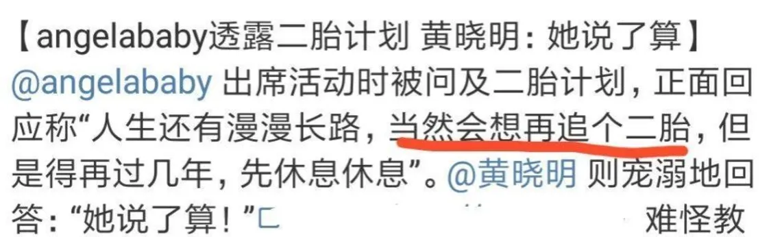 众所周知,黄晓明和前妻杨颖生了儿子小海绵,而两人还没有离婚前,黄晓明就不止一次表示,希望有个二胎女儿,不过当时他还是很尊重杨颖,表示一切要看妻子的意愿。