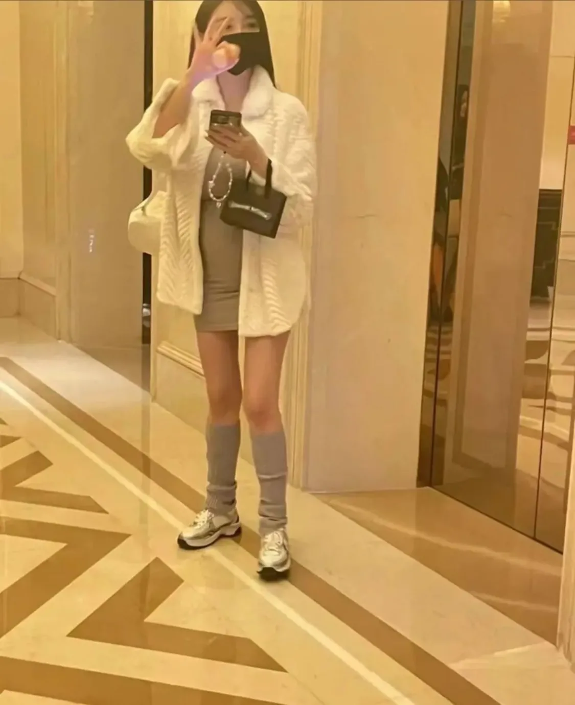照片里的叶珂内搭穿着一条紧身连衣短裙,露出大长腿,外面还穿着一件白色皮草,有网友认出这间皮草出自某大牌,价值高达15万。