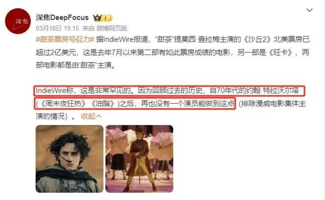 今年上半年上映的电影《旺卡》和《沙丘2》更是在北美票房中占据了榜一榜二的位置,