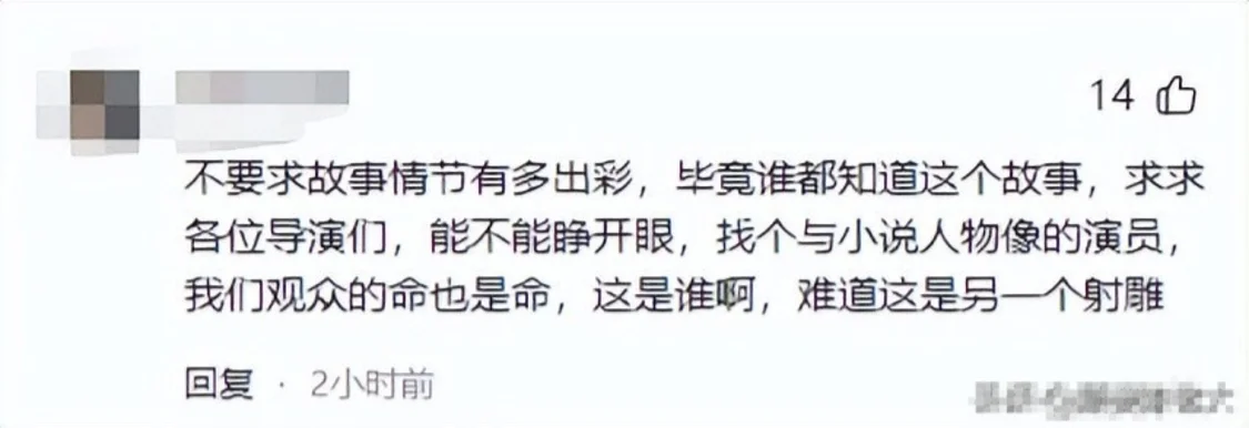 也有网友觉得选角是最重要的,故事情节只需要按照原著走就行,观众的命也是命啊,怎么就不能找个和原著贴合的?