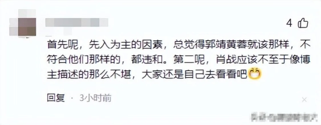 可能不是肖战和庄达菲不好,只是网友的心里有自己的郭靖和黄蓉,好不好的还是要亲自去看一下的,仅仅通过预告和其他人的描述是没办法深刻了解到的。
