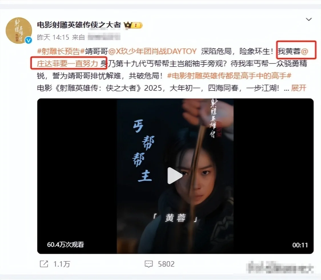 而这部电影主要讲述的就是郭靖的成长是的,所以电影的重心也更多的放在了肖战的身上,一直到预告出来之后大家才见识到了传说中的女主。