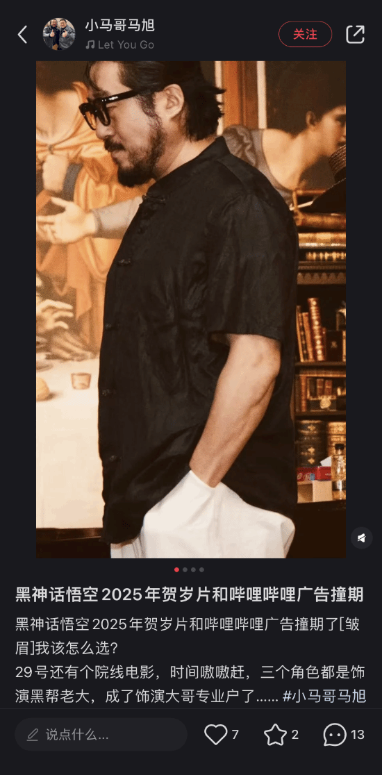 今日贴吧有网友发现,演员@小马哥马旭透露自己正在和游戏科学合作,拍摄《黑神话:悟空》2025年贺岁片。