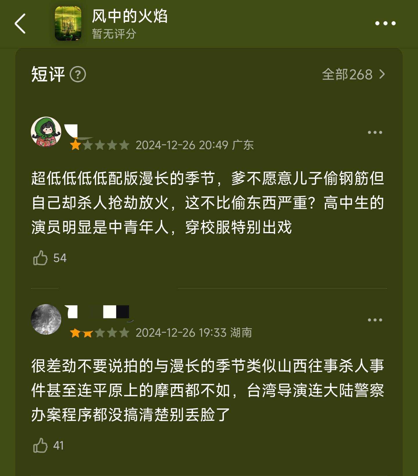 演员很有嚼头,本以为会是年底压轴爆款,没成想《风中的火焰》刚上,口碑就立马翻了车。