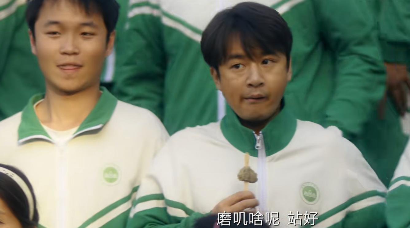 周围人一看都是十几岁的孩子,而他们仨站在中间,像是故意穿校服混进学校搞什么新玩法的家长。