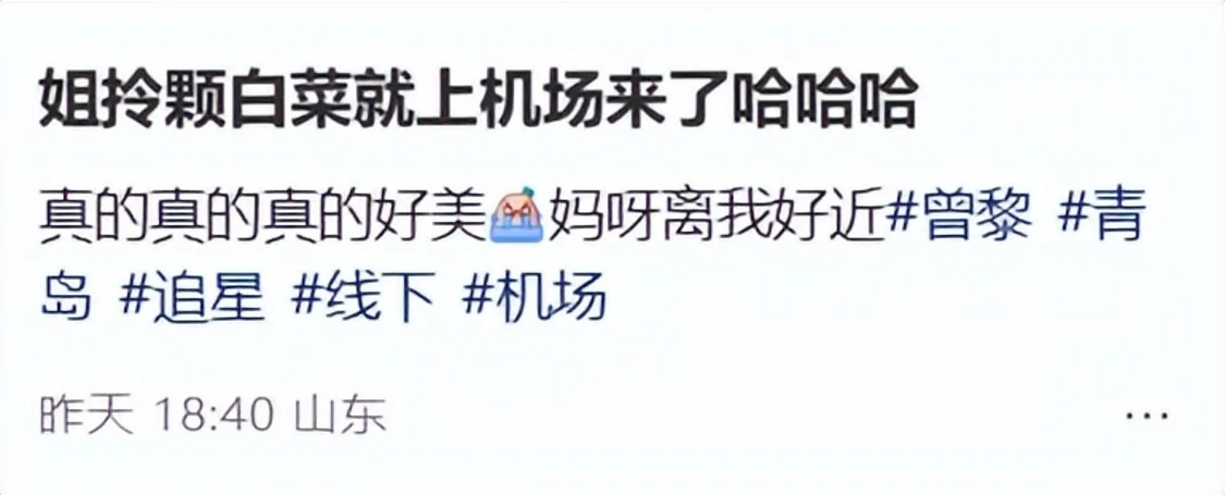 其实这并不是曾黎第一次来青岛了,据网友所说,曾黎之前去过青岛很多次,并且每次走的时候都要带走一颗大白菜,网友都忍不住感慨道:她怎么又去薅圆白菜了~
