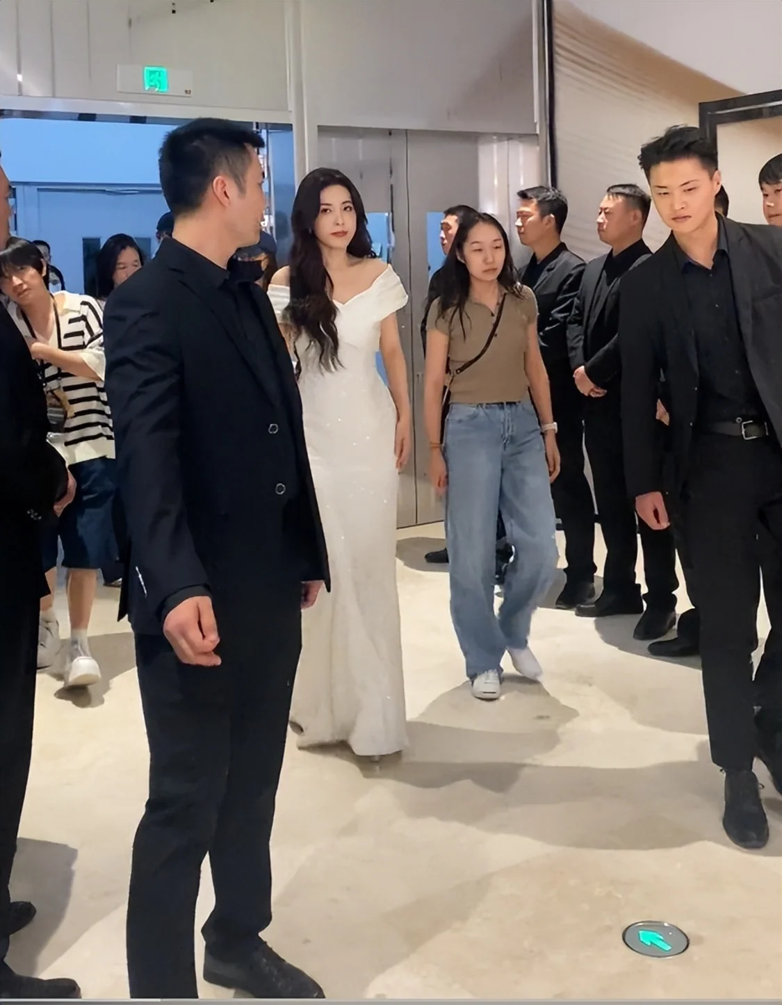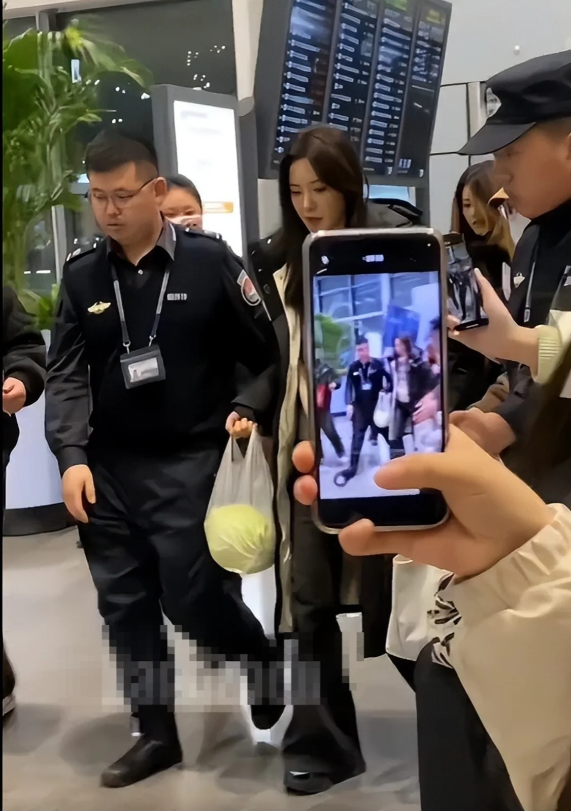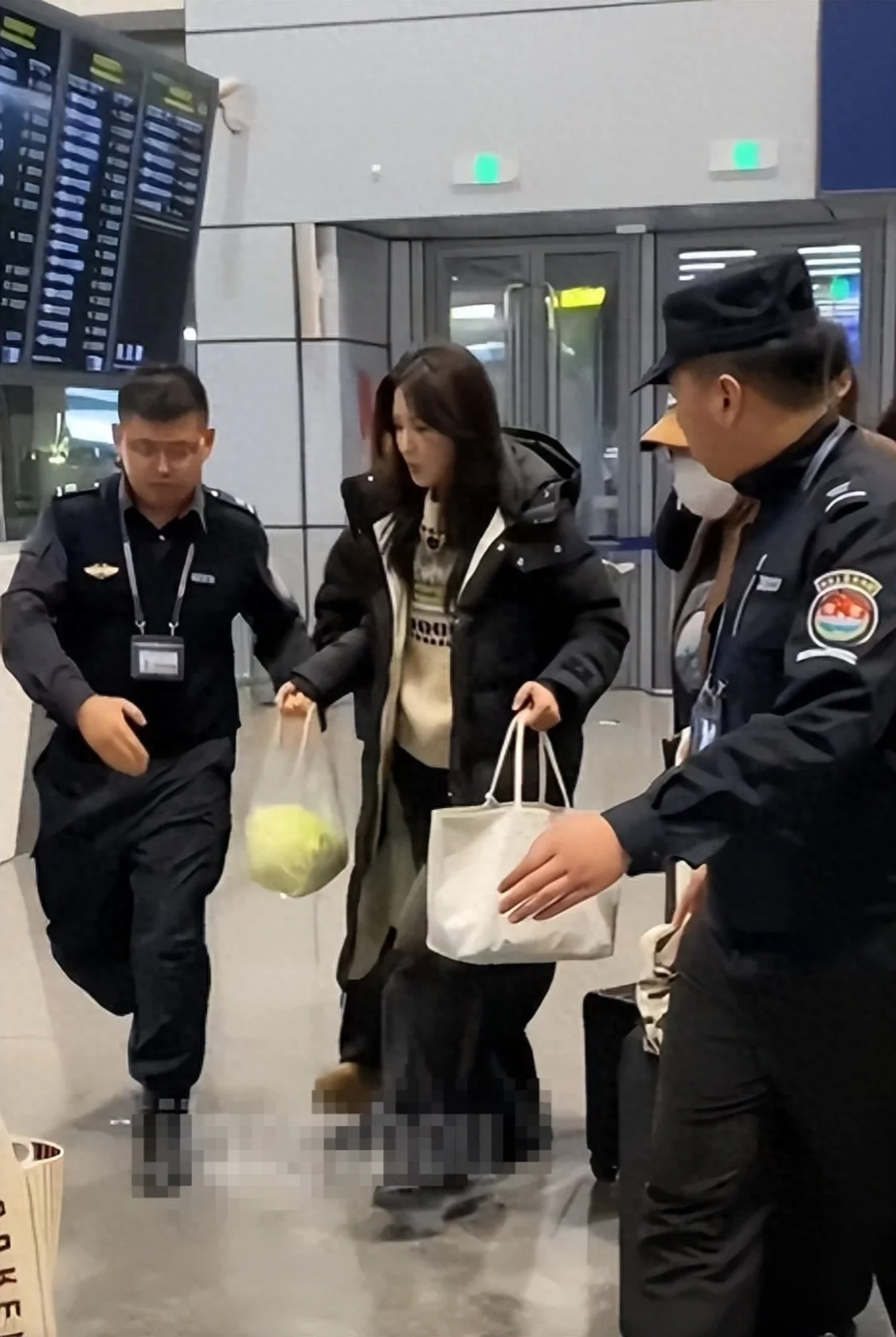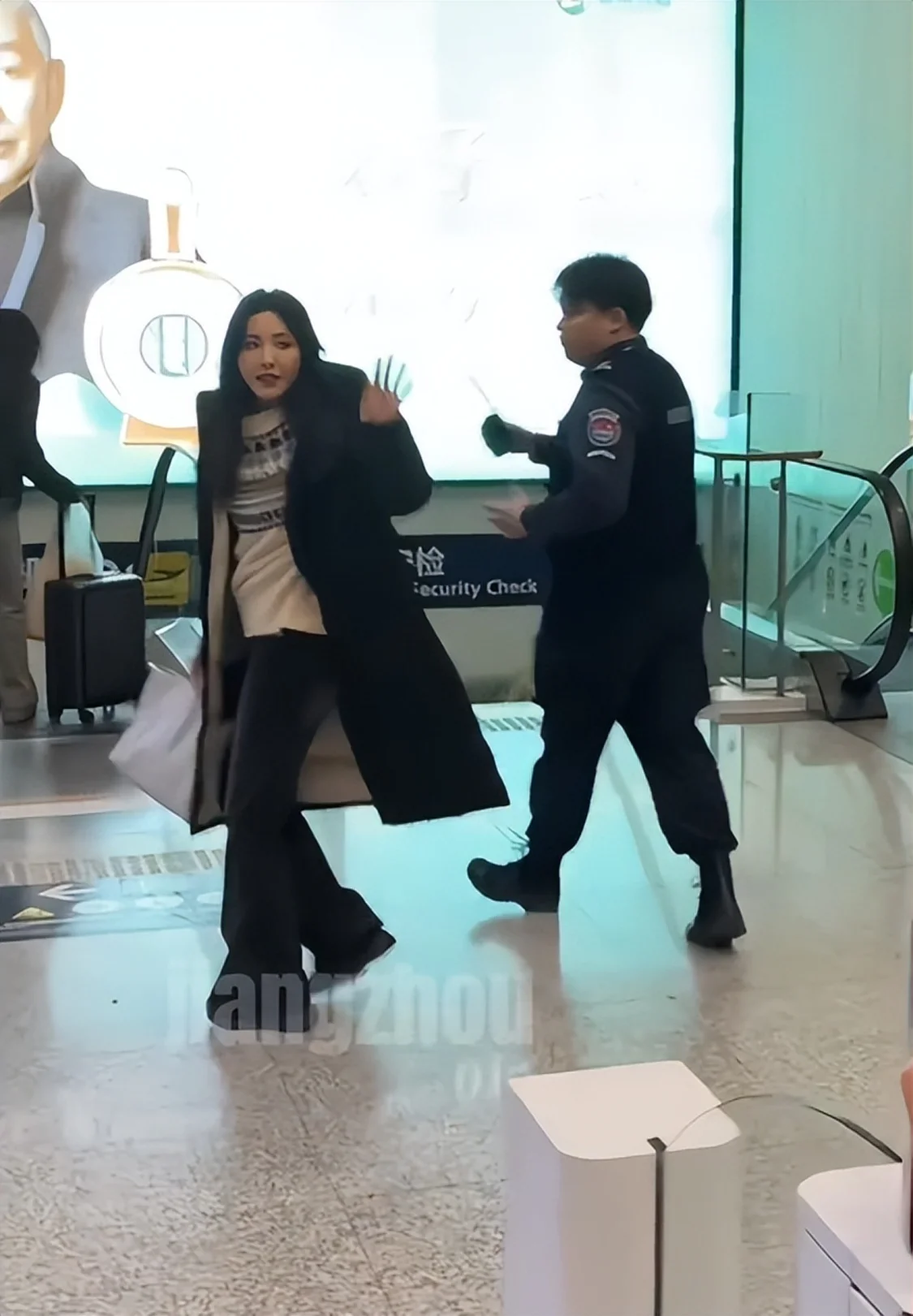 令人没想到的是,曾黎作为大明星居然一个保镖都没带,现场只有两位机场安保人员,在她的旁边为她开路,避免围观群众造成围堵。
