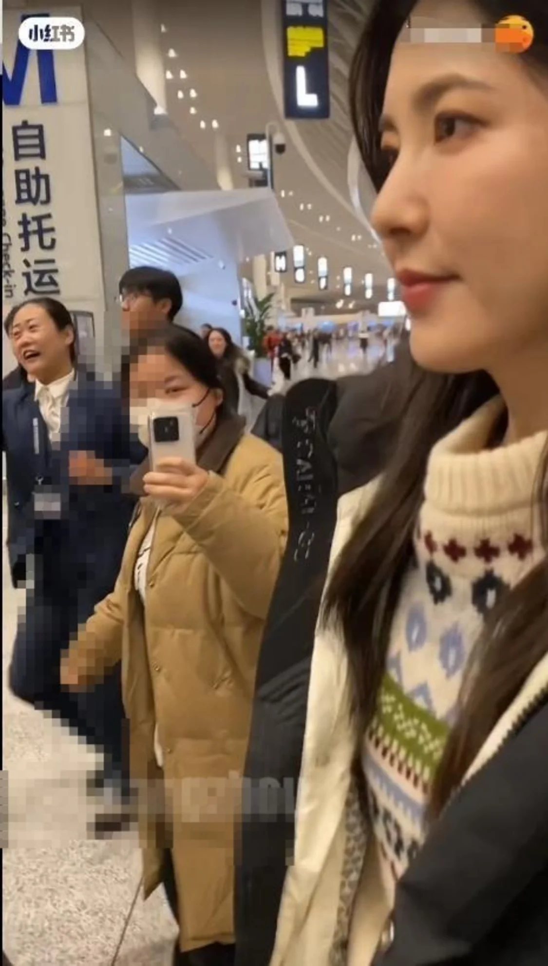 在她快走到登机口的时候,她才把头抬起来,恰好这时博主贴脸拍到了她的容貌。