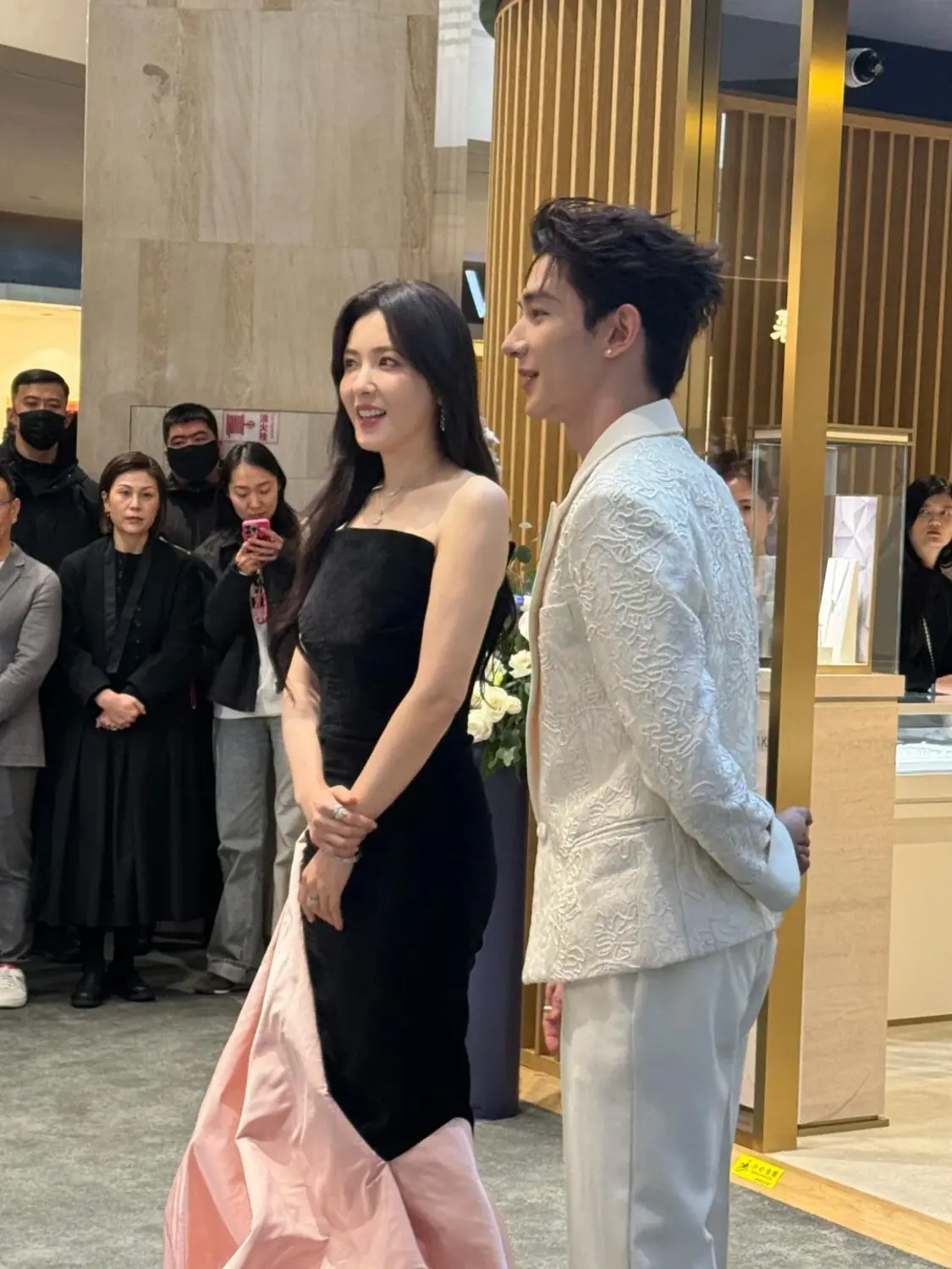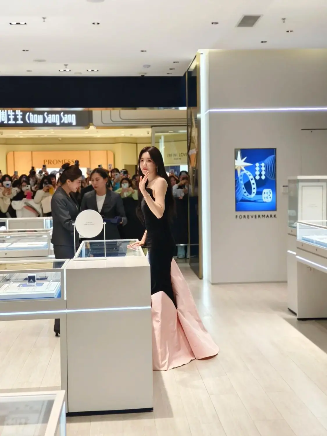 当时曾黎穿着一身黑粉色拼接的礼裙,站在化妆品柜台前,气质颜值十分出众,感觉好像她只要站在那里,所有的灯光就会自动朝她聚拢,周围的一切事物都显得黯淡无光。