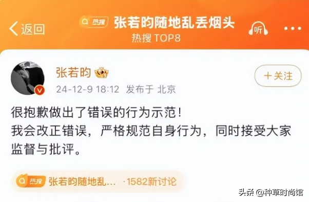 面对舆论的发酵,张若昀迅速通过个人社交账号发文道歉,表示会改正错误,严格规范自身行为,并接受大家的监督与批评。