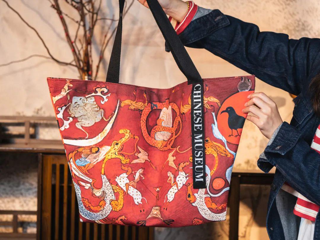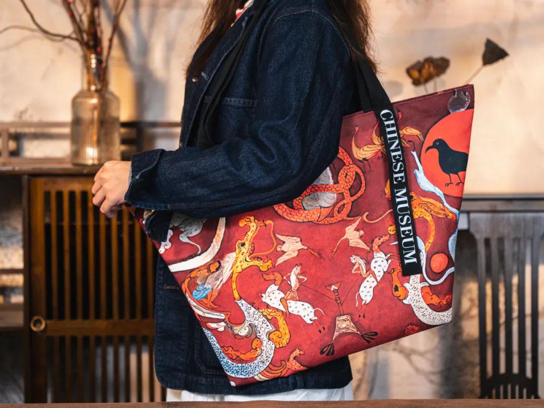 咱们这次豪华赠礼之一的帆布包,灵感就来自这幅帛画,金乌与飞龙都落在扶桑神树上,象征祥瑞和谐。