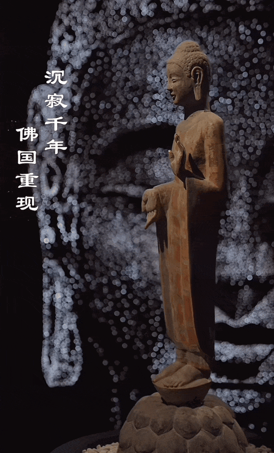 波涛翻腾间,有一九头金龙自在翱翔。华盖珠光流转,刹顶的大水晶球便金光闪烁“佛光普照”。