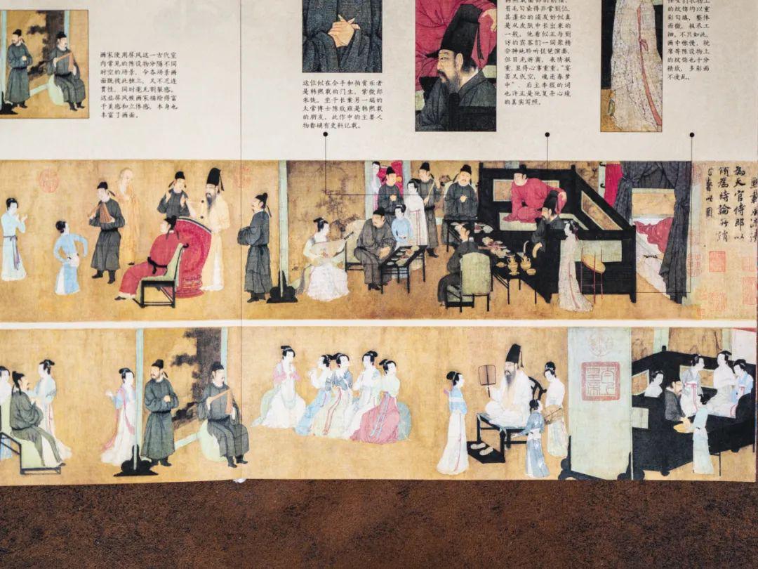书画艺术方面,从张择端的《清明上河图》,顾闳中的《韩熙载夜宴图》,讲到唐朝的《簪花仕女图》。