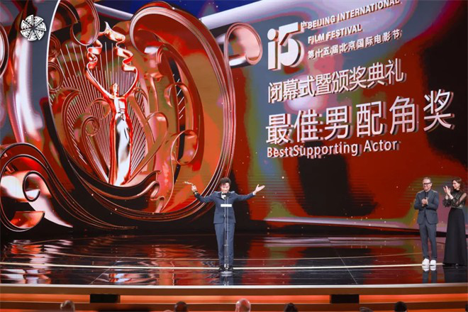 4月26日,第十五届北京国际电影节落下帷幕,由中国导演姜文领衔的天坛奖国际评奖评委会,在闭幕式暨颁奖典礼中颁出十项大奖。本届北京国际电影节闭幕式暨颁奖典礼由电影频道主持人蓝羽,搭档李杰、尼格买提、王异戈、悦悦、张弛共同主持。