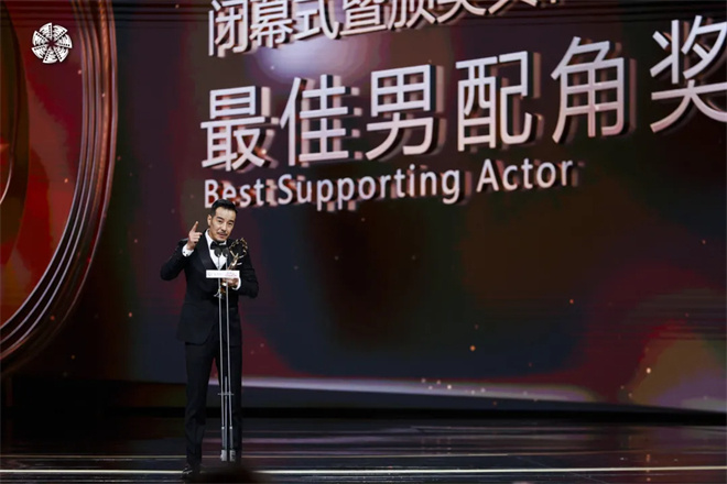 最佳男配角奖由《好好的》的海一天和《大风天》的耿乐获得。海一天在获奖感言中感谢了他生命中很多重要的女性,她的母亲、妻子,以及电影《好好的》的监制、领衔主演马丽,以及主演赵淑珍,感谢优秀的女性们,滋养了自己,也给自己的姑娘做了很好的榜样。