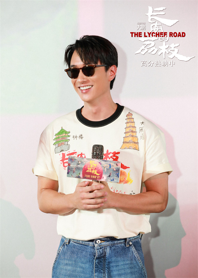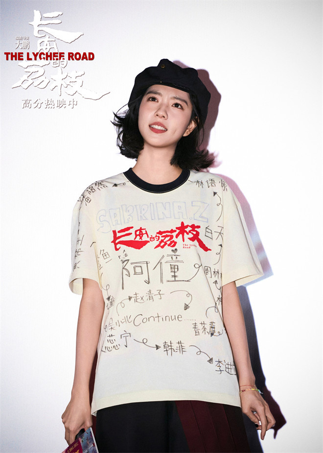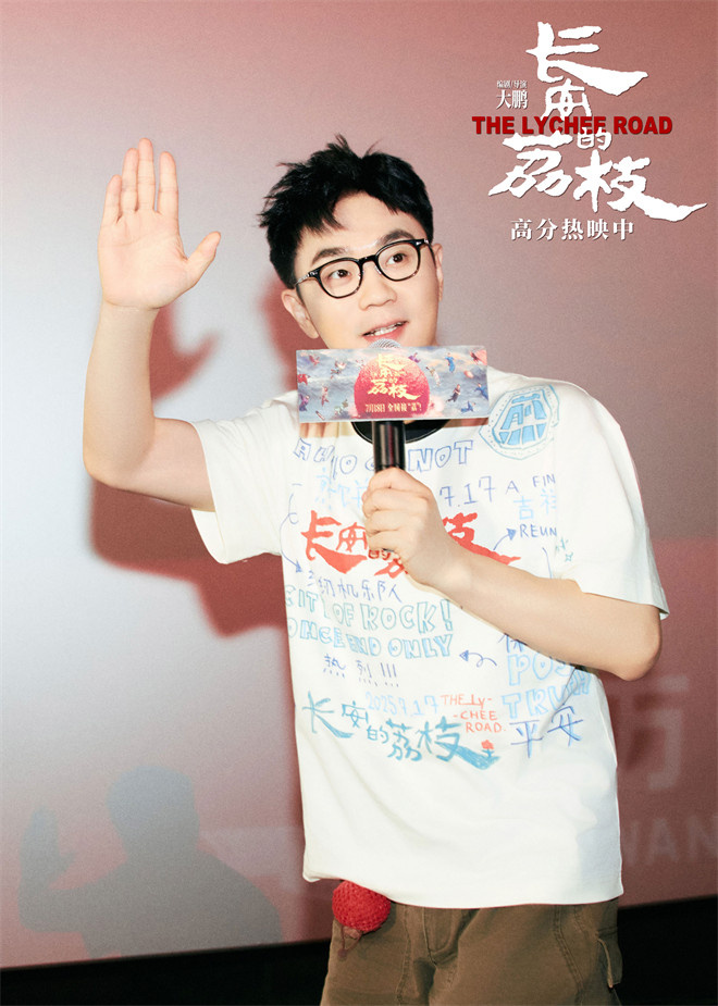 庄达菲为每位主创都手绘了限定款组服。大鹏组服上的十年导演作品、白客组服上的无往不荔大吉大荔等字样、庄达菲自己组服上过去饰演角色的名字、刘俊谦组服上的西安钟楼和大雁塔、常远组服上的红唇、口红搭配大唐口红销冠字样,皆彰显出她的巧手巧思,也让观众们皆感受到电影《长安的荔枝》剧组融洽欢乐的相处模式。