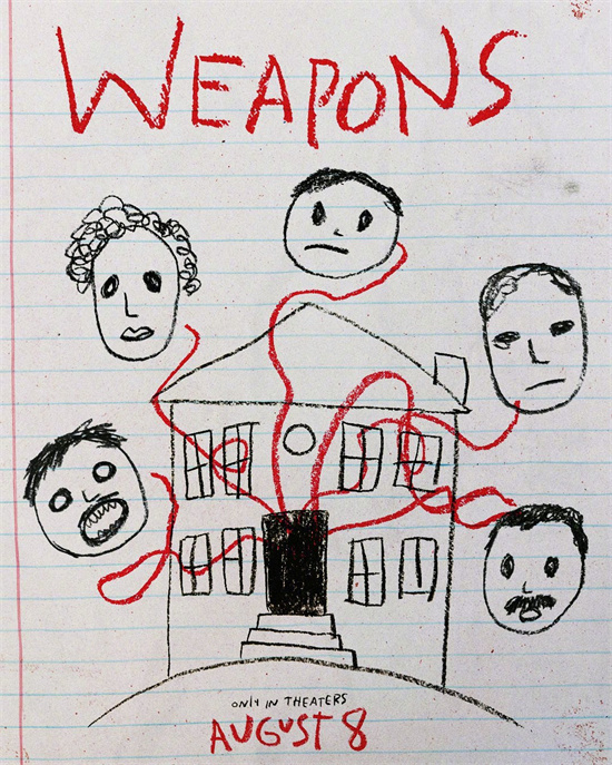 近日,由扎克克雷格(《野蛮人》《完美伴侣》)编剧并导演的电影《武器》发布两张全新海报,其中一张海报定格了主演朱莉娅加纳的脸,她正看向背后惊恐大叫。同时另一张海报则延续了儿童简笔画画风,从房子里衍生出的红色触手串联着五个不同的人,这又究竟意味着什么?