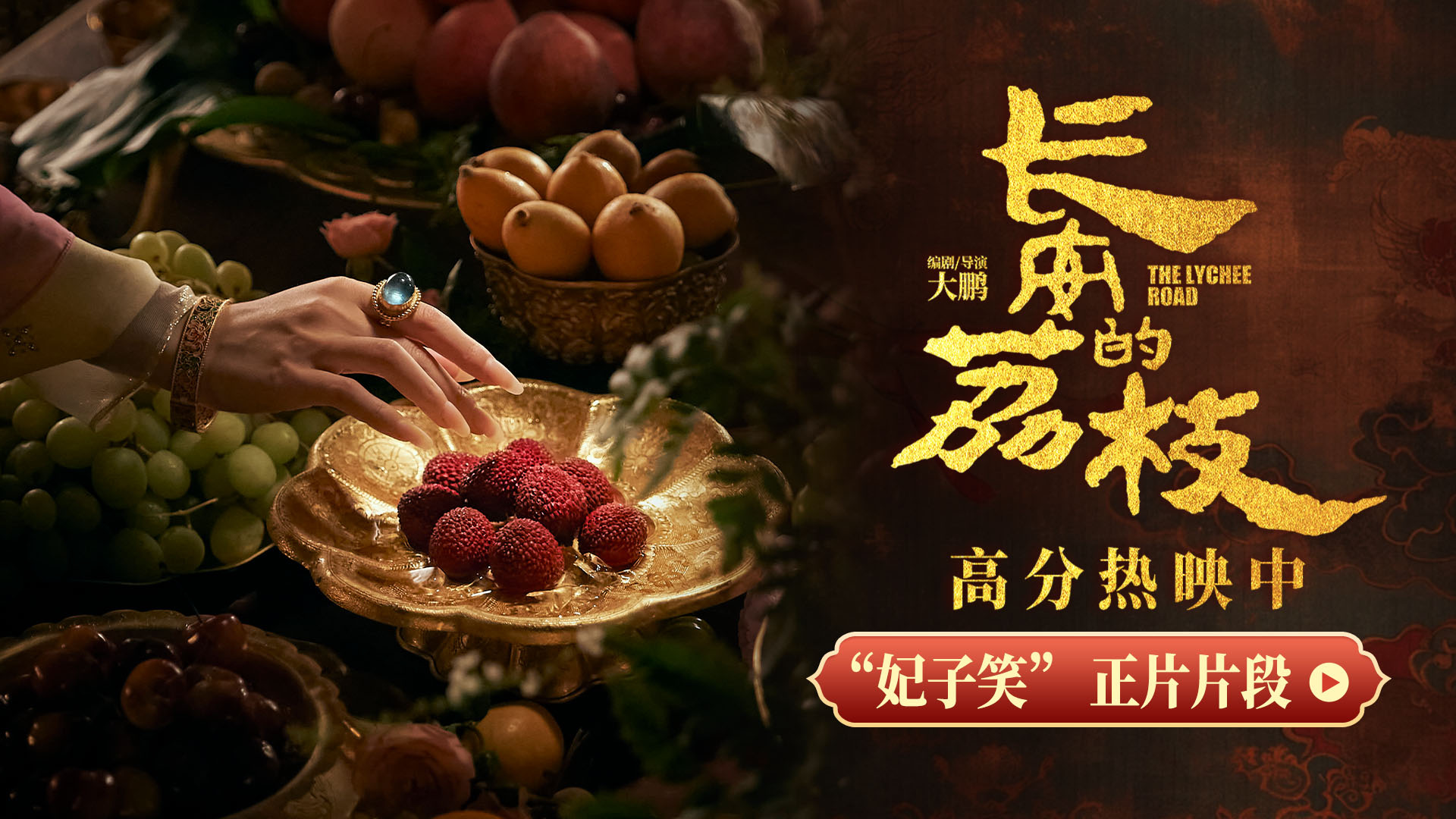 全新发布的妃子笑正片片段中,主创团队通过巧妙的镜头设计,让李善德千辛万苦送到长安的岭南鲜荔枝成为镜头中绝对的主角。观众跟着荔枝的主观视角穿过重重人群,见证了荔枝被珍而重之地送到圣人与贵妃面前的高光时刻。
