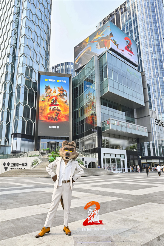 次日,大坏狼还亲身前往三里屯地标户外广告打卡,上演一出穿越屏幕的跨次元同框。