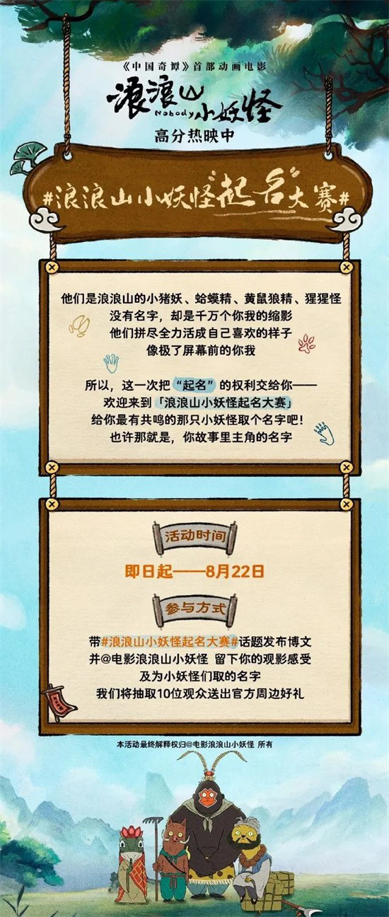 例如近期势头正猛的《浪浪山小妖怪》,在听取观众心声后也开启了为无名小妖怪(电影英文名《Nobody》)征名活动。
