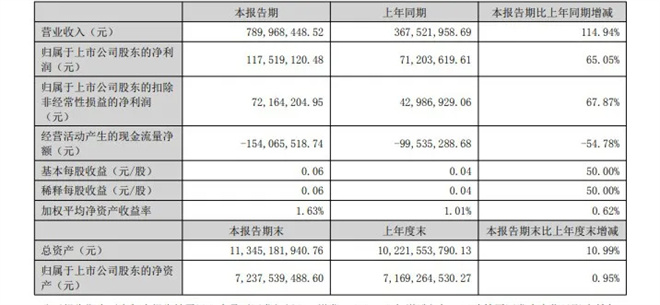 华策上半年总营收7.9亿元,同比增长114.94%;净利润达1.18亿元,同比增长 65.05%。