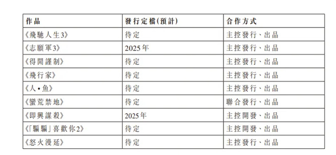 此外,《飞驰人生3》《得闲谨制》《飞行家》《人鱼》《骗骗喜欢你2》《怒火漫延》以及联合发行、出品的《蛮荒禁地》等也在推进中。