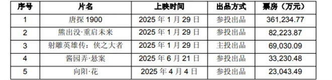 公司投资出品的《唐探1900》《熊出没重启未来》票房在上半年表现优异。暑期档还参与了冠军影片《南京照相馆》以及《聊斋:兰若寺》《长安的荔枝》等项目的投资。