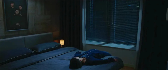 这个故事包装在精致构建的遮挡构图、冷色调的光影、低频配乐的风格中,在压抑窒息感的笼罩下,呈现出一个家庭的异托邦。