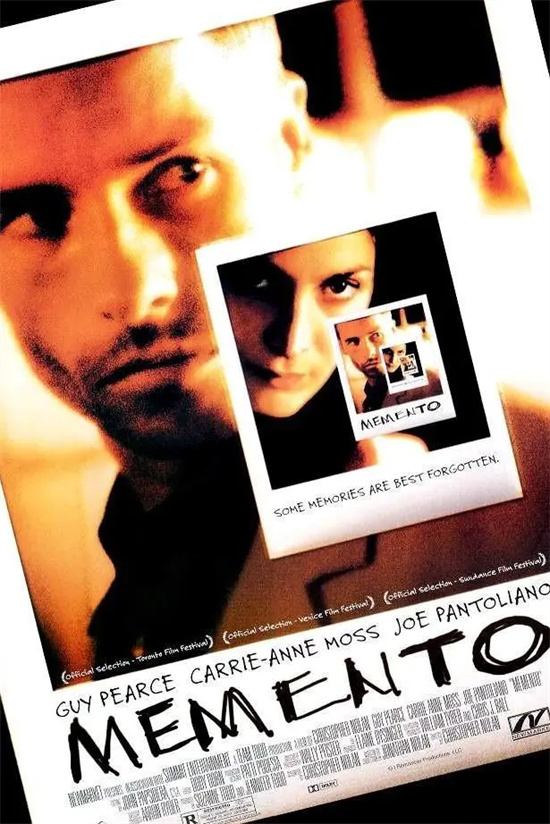 克里斯托弗诺兰执导的这部影片采用颠倒蒙太奇结合平行蒙太奇的手法,倒叙正序交叉进行。讲述一个短期记忆丧失的人寻找杀妻仇人的故事。最终揭示主角一直在欺骗自己,他才是悲剧的制造者。