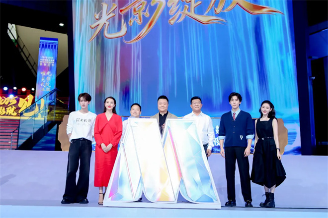 2025国庆档片单发布会上,2024-2025年度中国电影大数据暨电影频道M榜荣誉之夜总导演王岩、中共宜昌市委宣传部常务副部长邹青松 、宜昌三峡融媒体中心党委书记郑书香,与演员高圆圆、檀健次、王安宇、张天爱共同宣布系列活动开启。