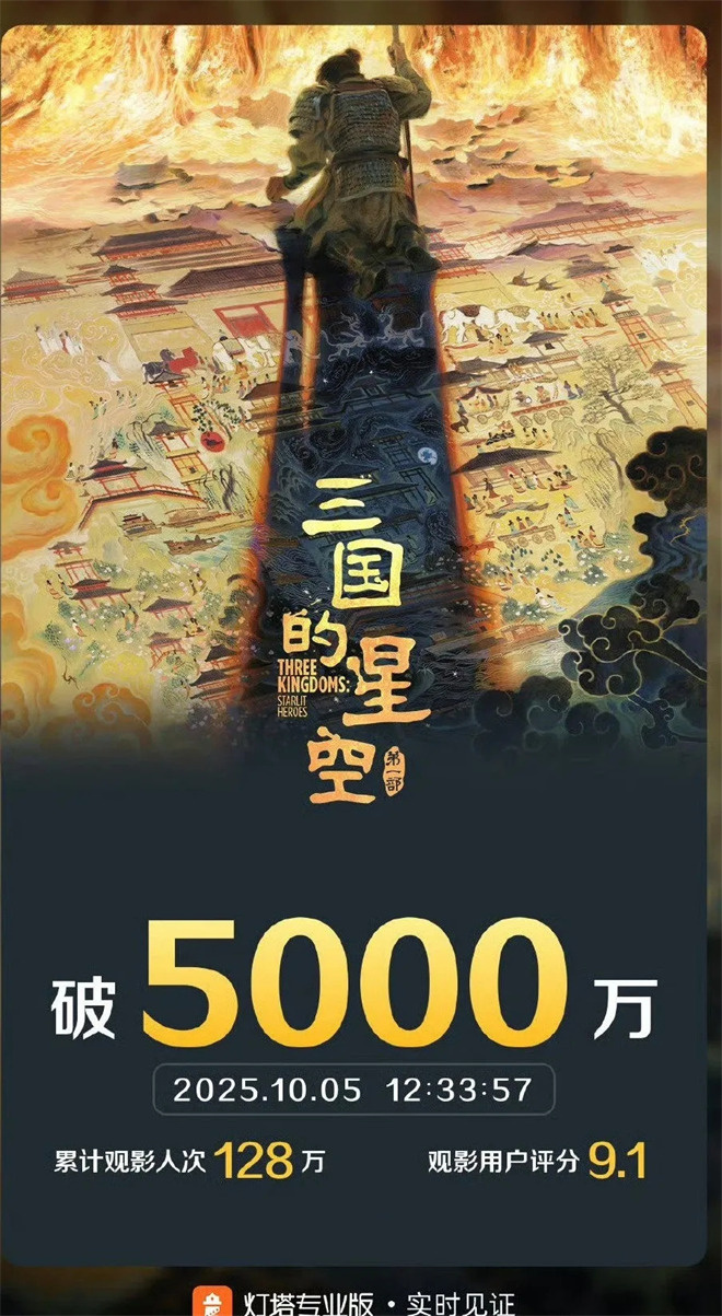 国庆档影视市场佳作云集,一部聚焦三国历史的影片《三国的星空第一部》凭借独特的叙事视角与精良的制作,成为观众热议的焦点。截至目前,该片票房超过5000万,豆瓣评分7.4,稳坐国庆档口碑排行前三。