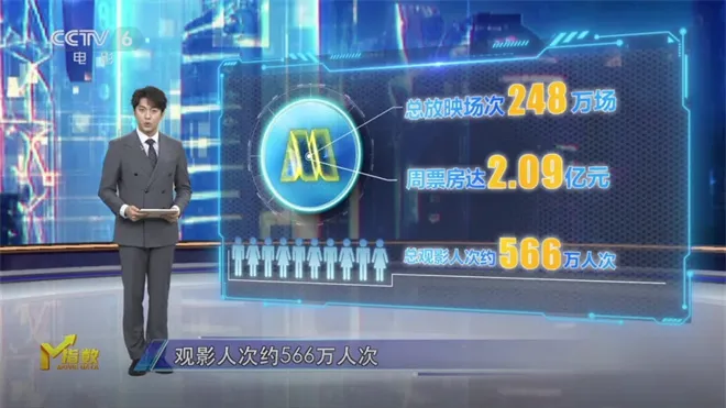 上周共上映10部影片,大盘数据显示,在过去的一周里,全国院线放映总场次248万场,周票房2.09亿元,观影人次约566万人次。2025年总票房达到了444.7亿元。