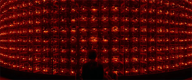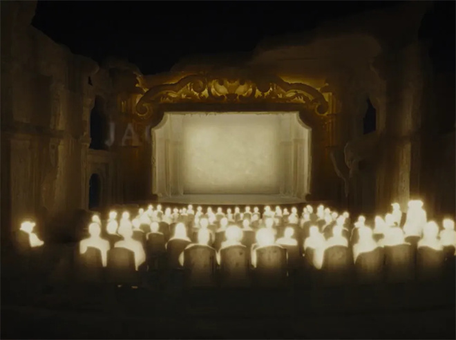 迷魂者的故事全部结束后,一群发着光亮的观众陆续走进如圣殿般的蜡烛剧院,伴随电影从放映到结束,剧院逐渐燃烧殆尽,观众也逐渐融化消失。